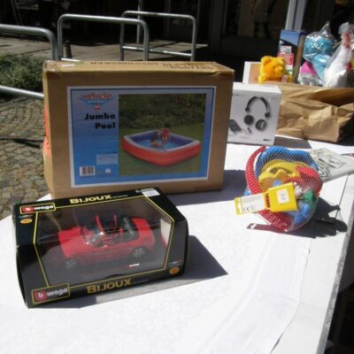 Diesjähriger Hauptgewinn, ein Plantschbecken / JUMBO POOL, organisierte Roswitha, außerdem noch Fußbälle, 2 knallrote Modellautos und dazu viele aufblasbare Wasserbälle als Trostpreise. Gewinner des Hauptpreises war der 9 jährige Fabian, der auch noch das richtige Los für den Eintritts-Gutschein in den Vogelpark bei Steinen zog. Den Erlös von € 600 spenden wir dem Plan Nothilfe Fonds, dieser unterstützt z.B. Kinder im Süd Sudan oder die von der Dürre in Afrika betroffenen.