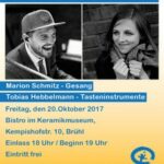 AG Rhein-Erft: Zweites Konzert mit „Schmitz/Hebbelman“ am Freitag, den 20. Oktober 2017, Beginn 19.00 Uhr (Einlass ab 18.00 Uhr), im Keramikmuseum, Kempishofstraße 10, Brühl. "Schmitz/Hebbelmann" - Das sind die Nachnamen zweier junger und sympathischer Musizierender aus Köln. Wenn Marion singt, dann mit Herz und von Kopf bis Fuß in der Musik. Sitzt Tobi einmal an…