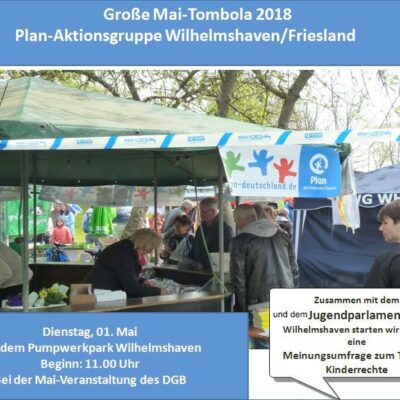 AG Wilhelmshaven: Bei der großen Maiveranstaltung des DGB ist die AG Wilhelmshaven/Friesland im Pumpwerkpark Wilhemshaven mit einer Doppelveranstaltung vertreten. Der Erlös der Mai-Tombola fließt in das Projekt "Sauberes Wasser für Ghana". Die Plan-Kooperationspartner DGB und das Jugendparlament Wilhelmshaven starten zusätzlich mit der AG zu einer Umfrage über Kinderrechte. Am Dienstag, 01. Mai. Beginn um 11.00 Uhr.…