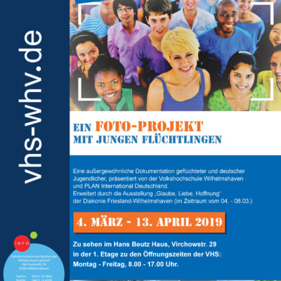 Vom 4. März 2019 bis 13. April 2019 wird die Fotoausstellung "Perspektive Deutschland" in der VHS Wilhelmshaven zu bestaunen sein. Mehrere Wochen lang hatten geflüchtete Jugendliche einer Hamburger Flüchtlingsunterkunft gemeinsam mit dem Jugendbeirat von Plan International an dem Fotoprojekt gearbeitet. "Was ist für dich typisch deutsch?" oder "Worüber hast du dich bei deiner Ankunft in Hamburg gewundert?" Das…
