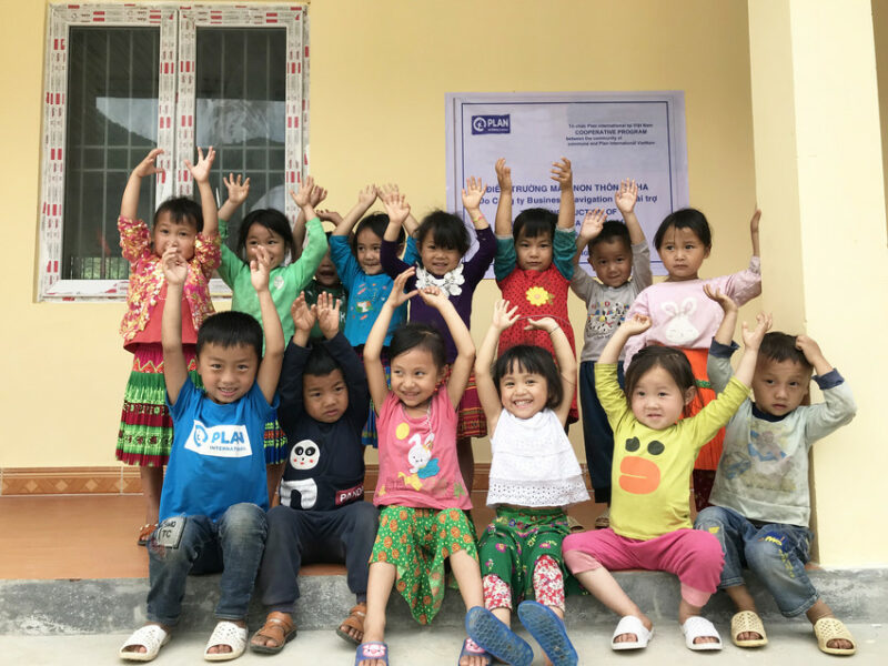 Kinder in Vietnam freuen sich, nach dem Corona-Lockdown ihre Freund:innen wiederzusehen. Foto: Plan International