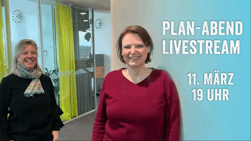 Ein digitaler Plan Abend ist in erster Linie ein Erlebnis. Pat:innen als auch Interessent:innen treffen uns. Entweder persönlich oder online. Es macht Spaß, sich auf einen Plan Abend zu begeben. Eine Einladung zu einem Plan Abend in Ihrer Region heißt für Sie, einen direkten und persönlichen Austausch mit Mitarbeiter:innen von Plan International. Die digitalen Plan Abende (= Livestreams) entstanden während der Corona-Pandemie als Pendant zu den vorher regelmäßig stattfindenden Plan Abenden.