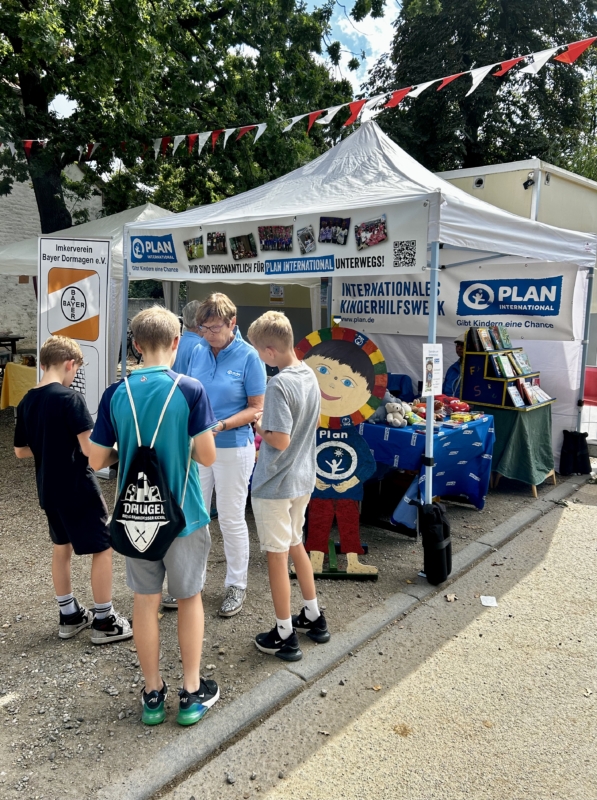 Der Klassiker! Wie seit Jahren sind wir von der PLAN AG Köln auch dieses Jahr wieder mit Infostand und Glücksrad auf dem „Dorffest“ im Kölner Stadtteil Esch präsent gewesen. Auf dem Foto (oben) wirbt Veronika gerade bei Gymnasiasten für die Teilnahme am PLAN Musikwettbewerb Cologne Song Contest an Kölner Schulen.