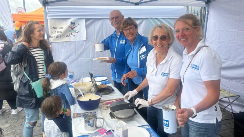 Trotz der ungünstigen Wettervorhersage und des morgendlichen Regens kamen gefühlt die erwarteten 50.000 Besucher:innen zum Kölner Rheinauhafen anlässlich des Weltkindertages. So konnten wir von der Kölner PLAN AG an unserem Stand mit Waffelbacken und Glücksraddrehen eine neue Rekordsumme zugunsten des PLAN Projektes „Ein Platz für Leben“ einnehmen. Siehe: https://www.plan.de/spenden/ein-platz-fuer-leben.html?sc=IDQ26100
