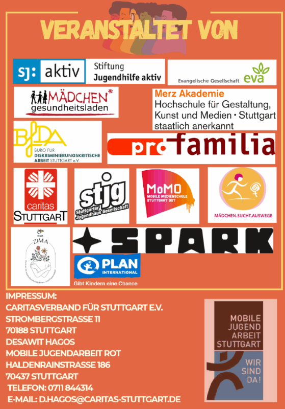 AG Stuttgart: Die AG feiert den Weltmädchentag zusammen mit anderen Akteur:innen und Organisationen am 10.10. ab 14:30 Uhr mit einer Demo und anschließend ab 15:30 Uhr mit Mitmachaktionen am Marktplatz Stuttgart.