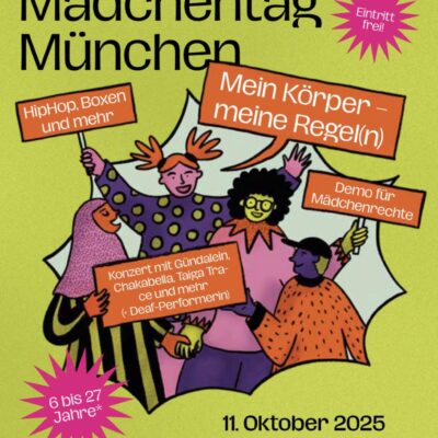 AG München: Am 11. Oktober feiert die AG den Weltmädchentag im Münchener Rathaus, sowie auf dem Marienplatz beim Fest für Daseinsfürsorge, von 11-17 Uhr. Im Rathaus gibt es Tanzcoaching mit Lisa Hyna von der AG. Auch das dt. Museum in München strahlt pink!