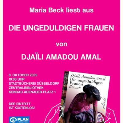 AG Düsseldorf: Am 09.10.2025 - anlässlich des Welt-Mädchentages am 11.10. - lädt die AG zu einer besonderen Lesung ein: Maria Beck liest aus dem bewegenden Roman „Die ungeduldigen Frauen“ der preisgekrönten Autorin und Menschenrechtsaktivistin Djaïli Amadou Amal. Ort: Herzkammer der ZentralbibliothekIn eindringlichen Stimmen erzählt Amal die Geschichte dreier junger Frauen aus dem Norden Kameruns, die sich mutig gegen…